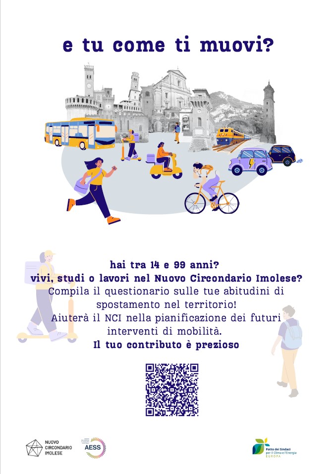 Al via dal 9 dicembre 2025 all’11 gennaio 2026 l’indagine pubblica “E tu come ti muovi?” che il Nuovo Circondario Imolese, con il supporto tecnico dell’Agenzia per l’Energia e lo Sviluppo Sostenibile (AESS), promuove per fotografare le abitudini di spostamento di residenti e frequentatori del territorio e individuare esigenze e criticità, in particolare rispetto all’uso di alternative all’automobile.